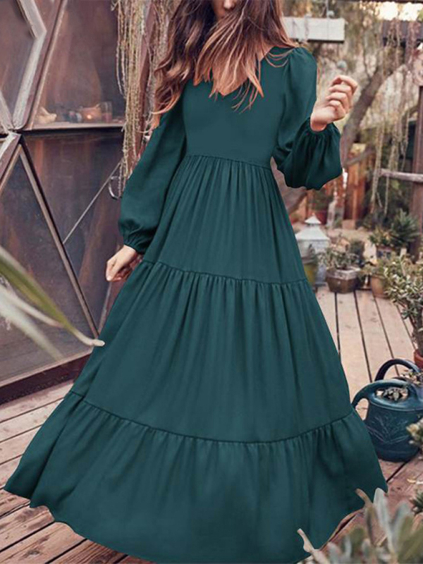The Autumn Temperament Women’s Swing Dress features a flowing large swing silhouette and a classic round neckline. Ideal for spring and summer, it offers an elegant look with long puff sleeves, making it perfect for outdoor gatherings and social media-worthy moments.