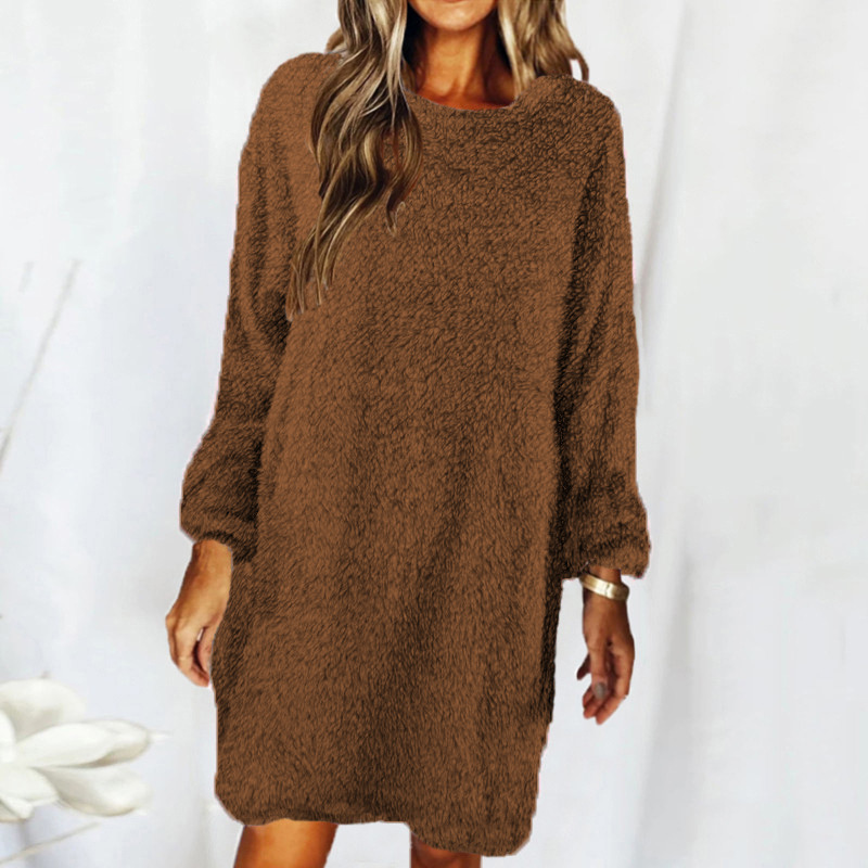 Stay cozy this autumn-winter with our Loose Plush Dress. Featuring a soft, plush texture and a relaxed fit, this long-sleeved dress with a round neckline provides ultimate comfort and style. Perfect for casual outings and lounge days. Embrace the trending luxurious loungewear look.