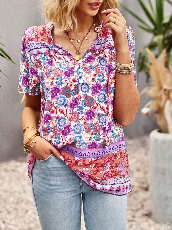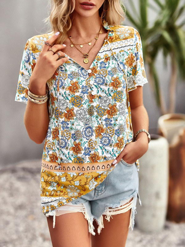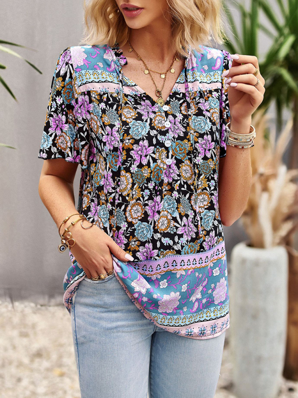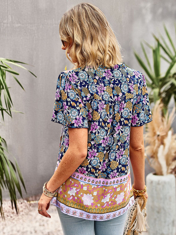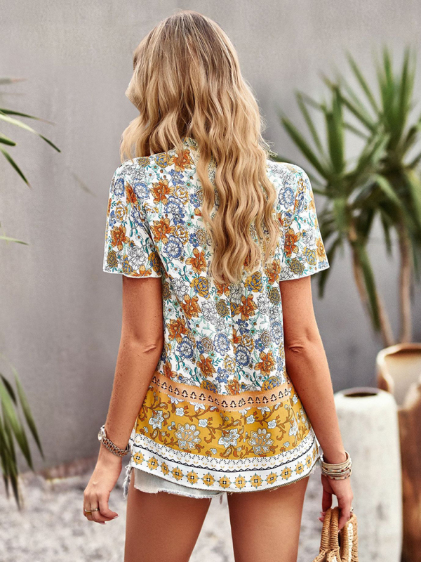 Crafted from a blend of 5% Polyester and 95% Rayon, this New Ladies Casual Bohemian Printed Shirt Top is lightweight and breathable. Perfect for a variety of occasions, this top is perfect for all seasons, making it a versatile addition to any wardrobe.