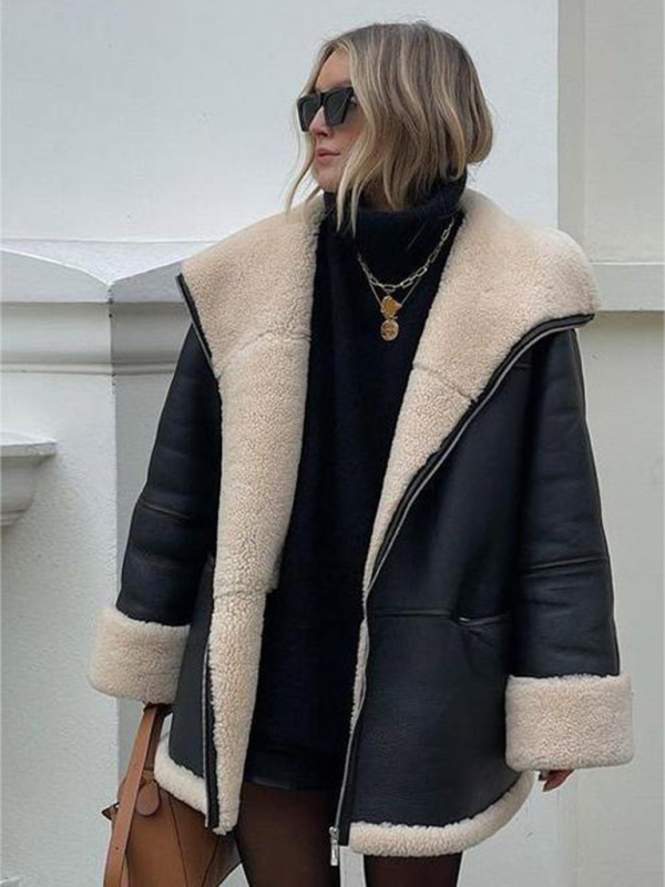 Cashmere leather fur collar composite jacket. Please use the size guide shown in our pictures. Before choosing a size, please read each element of the size guide carefully. Unique design, classic style, casual and comfortable. It is suitable for outing and leisure. The size is measured manually, and the error of 1-3cm is normal.
