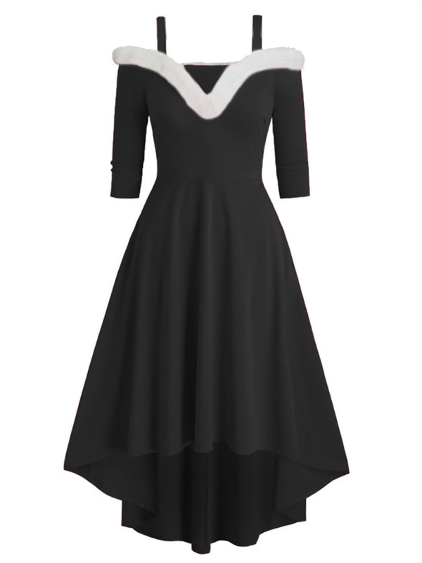 Christmas long-sleeved plush high-low deep V off-the-shoulder dress with a wide hem and a variety of matching options to make you confident and beautiful. Please use the sizing guide shown in our images. Please read each element of the sizing guide carefully before choosing a size. The size is measured manually, and there is an error of 1-3cm, which is normal.