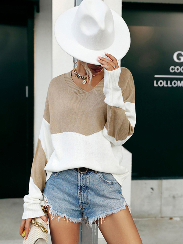 colorblock sweater european and american fashion autumn top