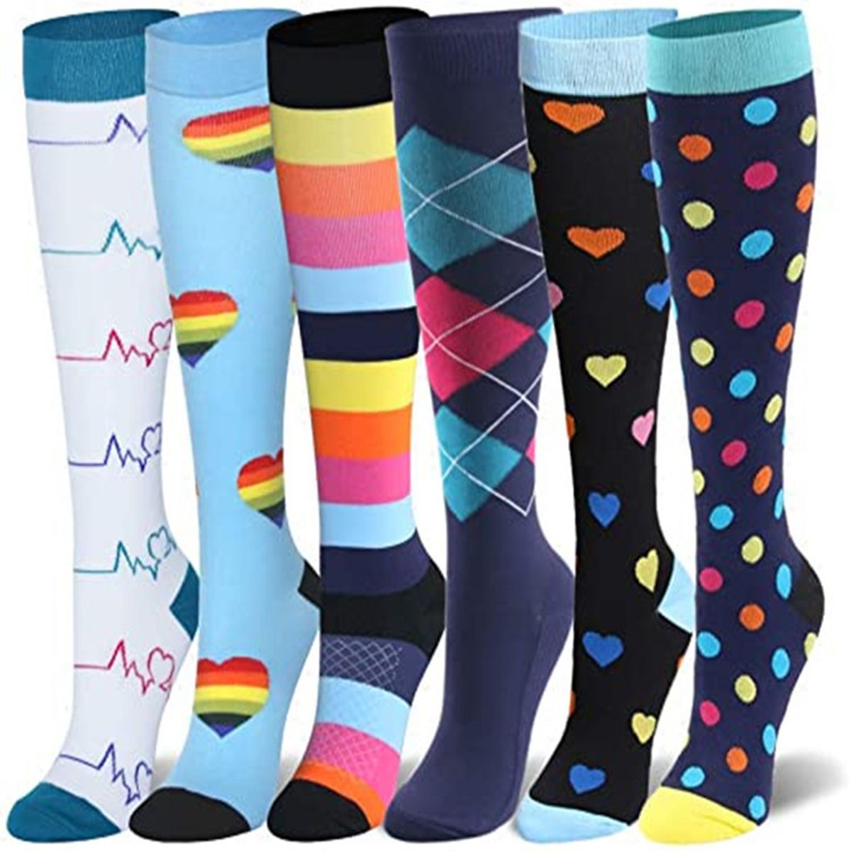 Compression Socks Women & Men Circulation(6 pairs) – Best for Running, Nursing, Hiking, Recovery & Flight Socks COMPRESSION IS PROVEN to allow you to move faster, react quicker and use less energy. Targeted compression zones provide varying levels of support from moderate to extra firm. Unique color design, add a touch of color to your ordinary life. COMFORTABLE MATERIAL AND CAREFUL CONSTRUCTION – Knee high compression socks’ material are upgraded with nylon percentage from 40% to 85%, Delivers 360-degree stretch for greater flexibility and durability. Breathable high performance fabric keeps an optimal temperature. We are confident that you will choose it GREAT GIFT IDEA – If you are struggling with a gift idea to a loved one or a casual friend, this is will reduce your anxiety without even you wearing them. Great gift choice for joggers, athletes, workout fanatics, office workers.