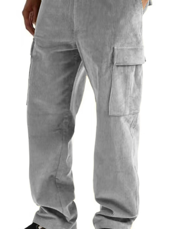 Corduroy multi-pocket straight trousers men’s sweeping pants men’s casual loose trousers