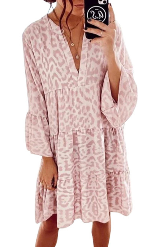 Leopard print dress boasts an eye-catching design.