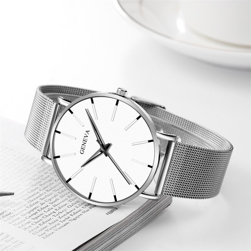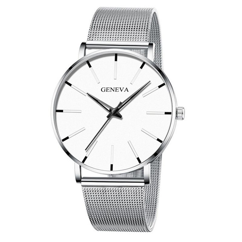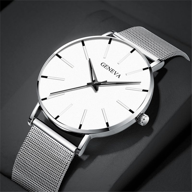 Fashion Men’s Ultra Thin Watches Minimalist Men Business Silver Stainless Steel Mesh Belt Quartz Watch