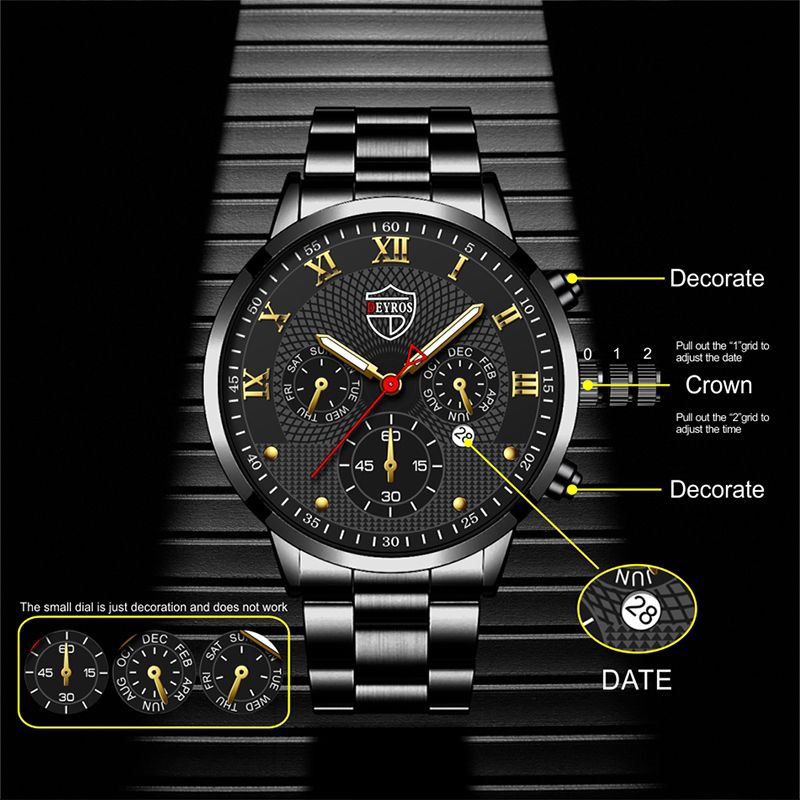 Fashion Mens Watches for Men Sports Luminous Clock Stainless Steel Quartz Wrist Watch Man Business Leather Watch montre homme