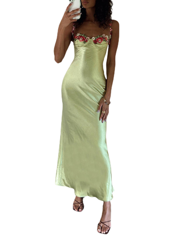 Fashion Sexy Embroidered Lace Camisole Solid Color Long Dress