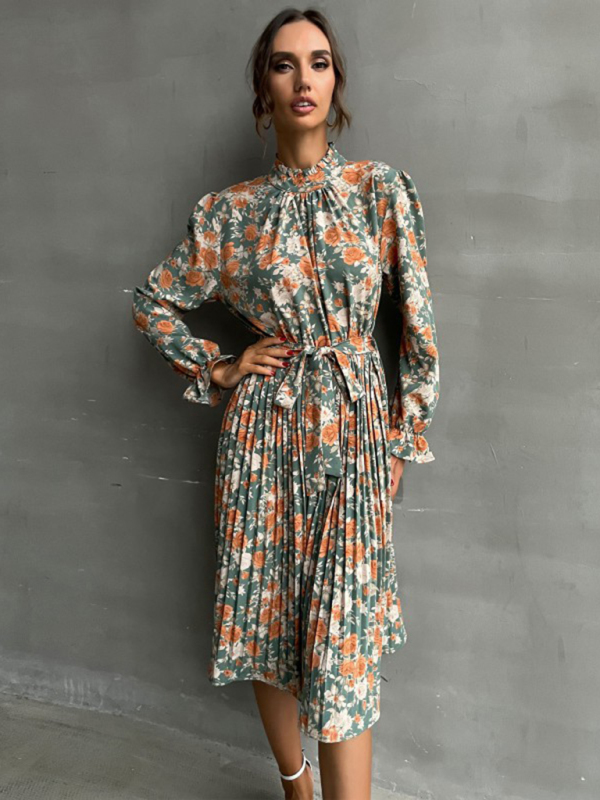 Elevate your style with this fashion-forward women’s dress. Made of 100% polyester, this printed long-sleeved dress features a half-high neck design. Perfect for all seasons, this dress is versatile and great for any occasion. Stand out in this trendy and chic piece.