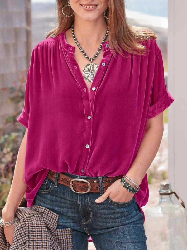 The golden velvet solid color short-sleeve round neck shirt is suitable for many occasions, and the simple design makes the boring season colorful and interesting. A variety of collocation options make you confident and beautiful. It fits snugly without restricting your movement.