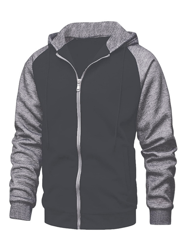 Jacket Contrasting color zipper cardigan plus fleece hoodie men’s clothing