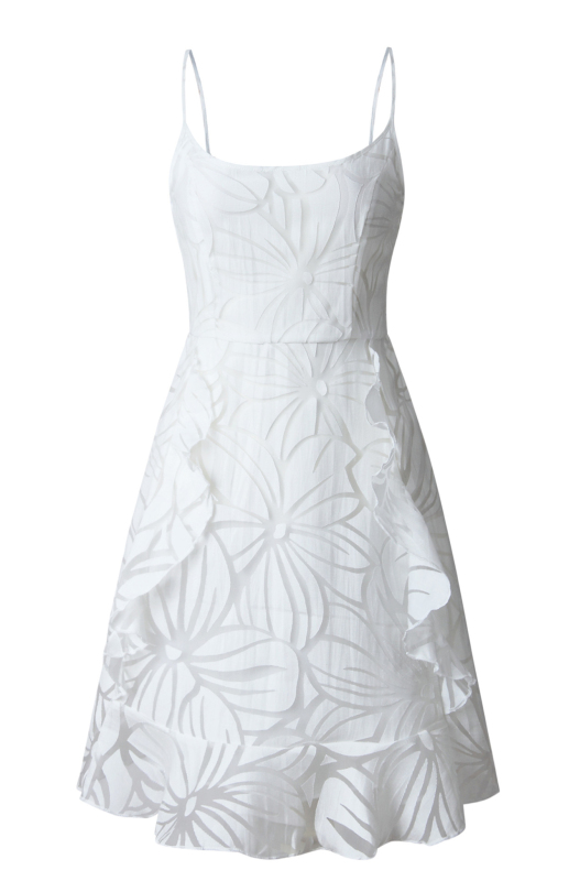 Detailed with delicate floral patterns and ruffles.