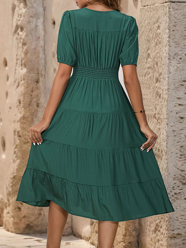 Women’s new V-neck short-sleeved waist dress, the simple design makes the boring season colorful and interesting. When purchasing, it is recommended to pay attention to the appropriate size to ensure comfort and fit. Please read each element in the size guide carefully before choosing a size. Sizes are measured manually, and an error of 1-3cm is normal. In addition, it is important to understand the material and care requirements of the clothing in order to properly care for and maintain the clothing and extend its service life.