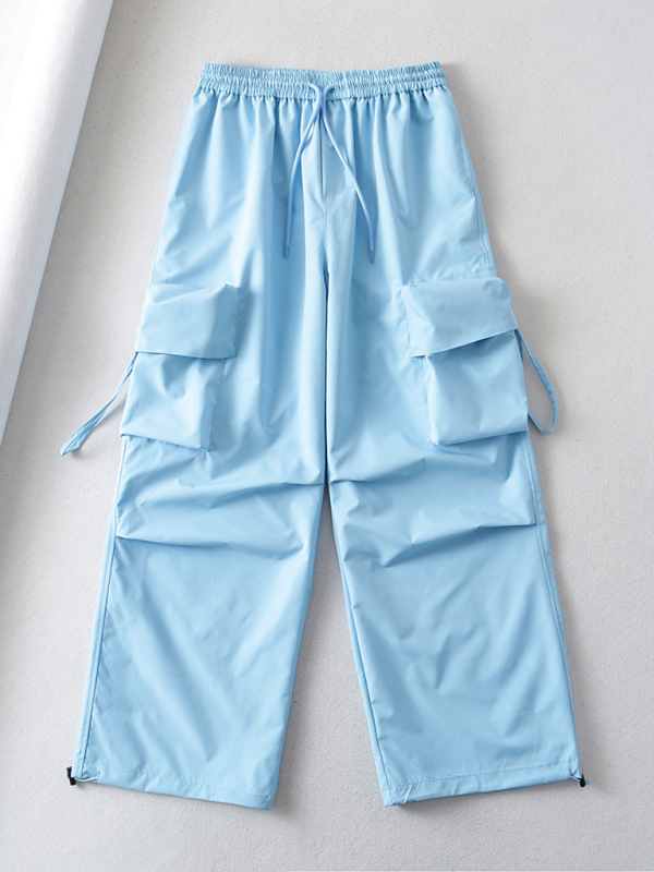 Large pocket sports cargo pants, loose casual drawstring straight fast