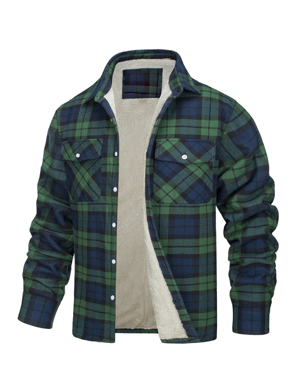 Crafted from thickened corduroy and velvet, this Men’s long-sleeved jacket stands out with its stylish plaid patchwork design. The relaxed fit and cozy material composition of 100% Polyester ensure both comfort and warmth, making it perfect for casual outings or outdoor activities during colder seasons.