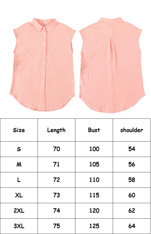 Elevate your spring-summer wardrobe with this sleeveless linen blouse. Featuring a classic lapel and button-down design, its curved slit hem adds style. Perfectly versatile for both casual and semi-formal occasions. Stay trendy effortlessly.