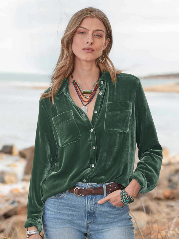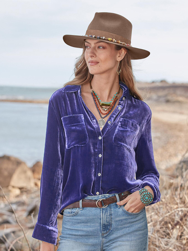 Long-sleeved all-match velvet and golden velvet top with loose base lining