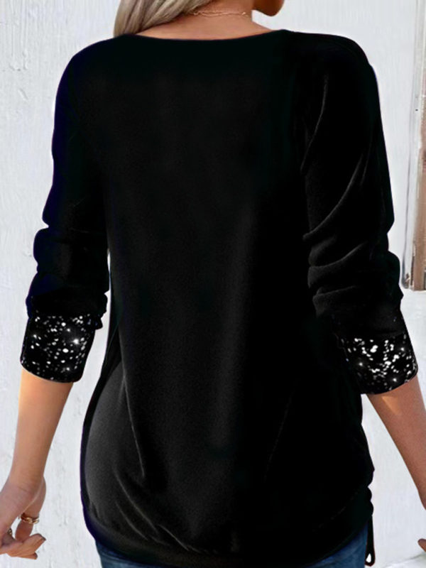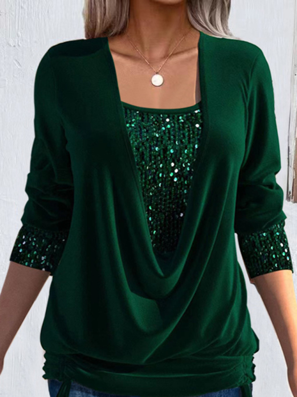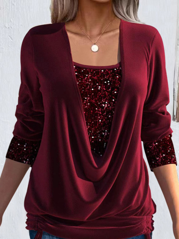 Long-sleeved women’s large drop collar loose shirred fake two-piece