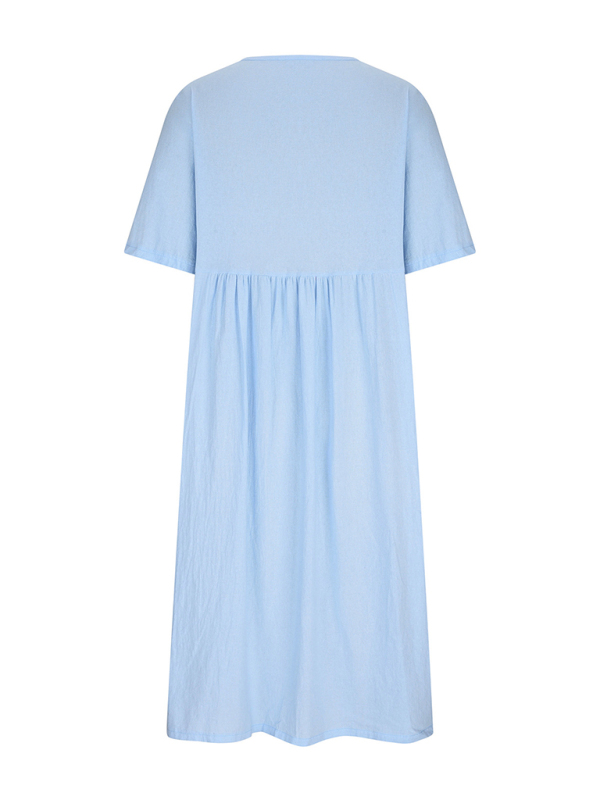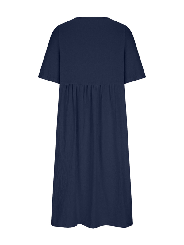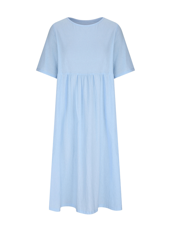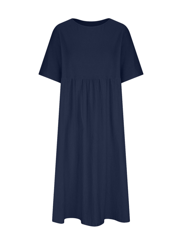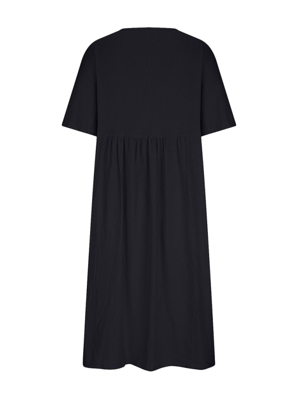 Loose Round Neck Half Sleeve Midi Dress. Please use the size guide shown in our pictures. Before choosing a size, please read each element of the size guide carefully. Unique design, classic style, casual and comfortable. It is suitable for outing and leisure. The size is measured manually, and the error of 1-3cm is normal.