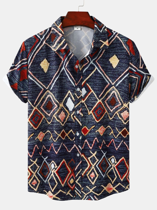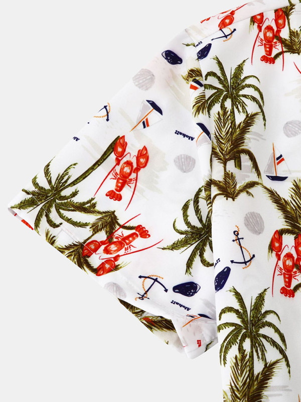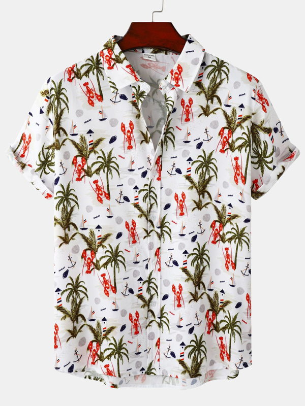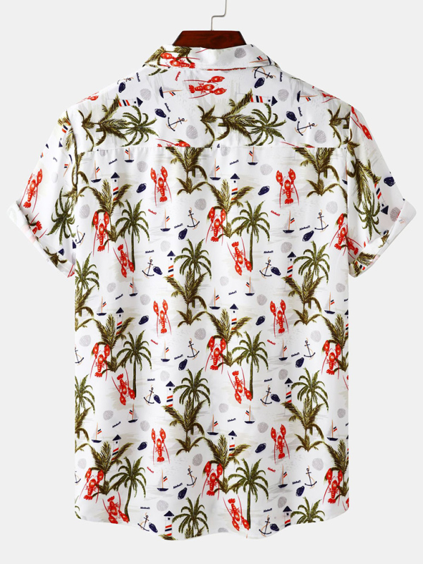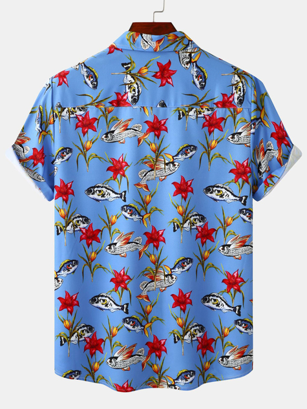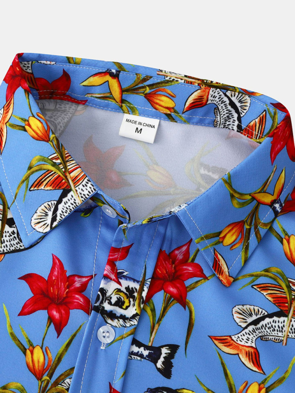 Men’s Floral Print Design Sleeve Beach Vacation Shirt