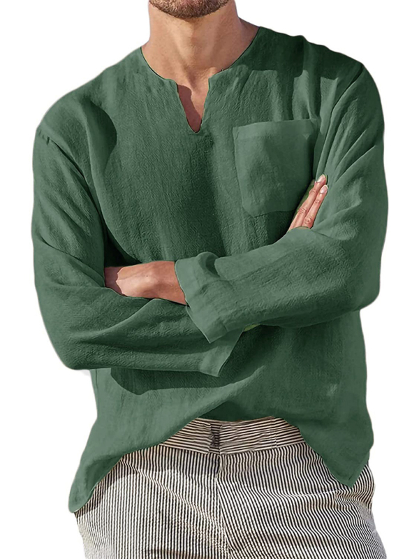 Men’s Long Sleeve V Neck Casual Beach Linen Shirt is suitable for many occasions, the simple design makes the boring season colorful and interesting. A variety of collocation options make you confident and handsome. It fits snugly without restricting your movement. Key features include. – comfortable fabric