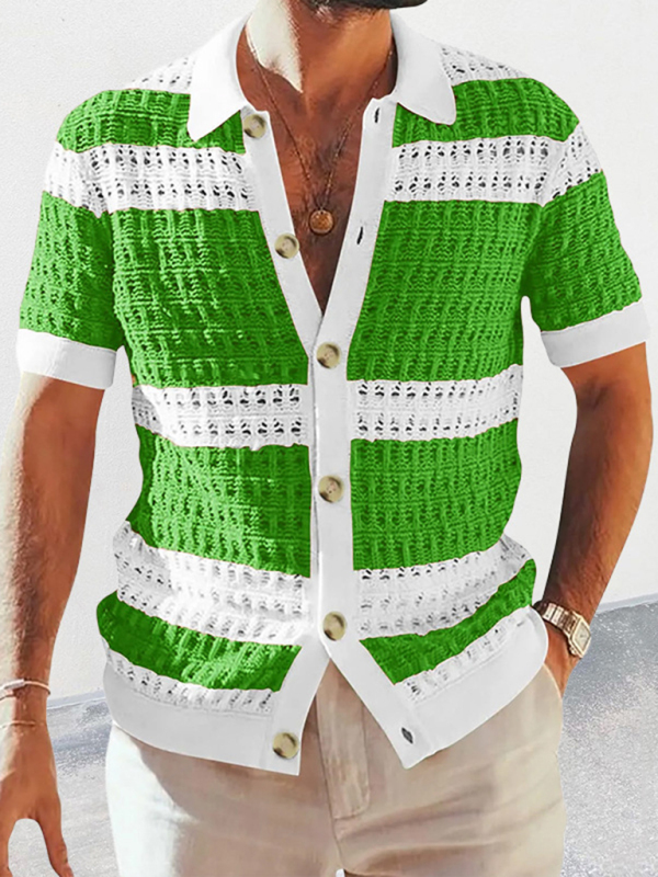Men’s new lapel short-sleeved color-blocked cardigan is suitable for a variety of scenes. The simple design makes the boring season colorful and interesting. A variety of matching options make you confident and handsome. When purchasing, it is recommended to pay attention to the appropriate size to ensure comfort and fit. Please read each element in the size guide carefully before choosing a size. Sizes are measured manually, and an error of 1-3cm is normal. In addition, it is important to understand the material and care requirements of the clothing in order to properly care for and maintain the clothing and extend its service life.