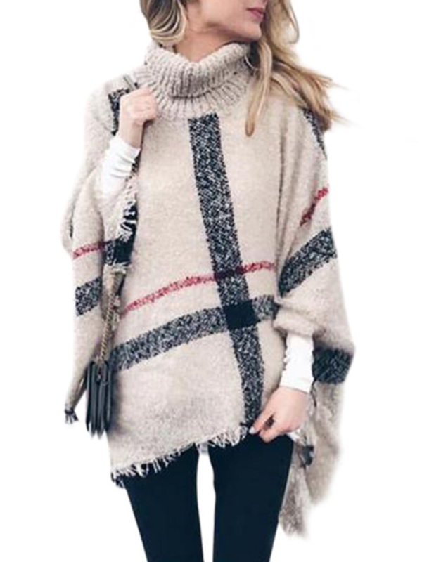 The new women’s mid-length high-neck tassel cape and loose knitted sweater is suitable for many occasions. The simple design makes the boring season colorful and interesting. A variety of matching options make you confident and beautiful. Please use the sizing guide shown in our images. Please read each element of the sizing guide carefully before choosing a size. The size is measured manually, and there is an error of 1-3cm, which is normal.