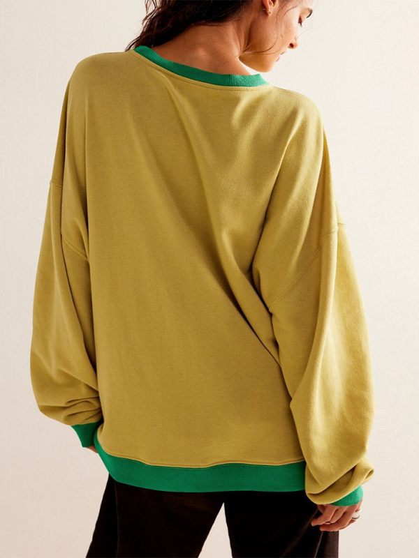New autumn and winter solid color round neck fork loose sweatshirt sweatshirt