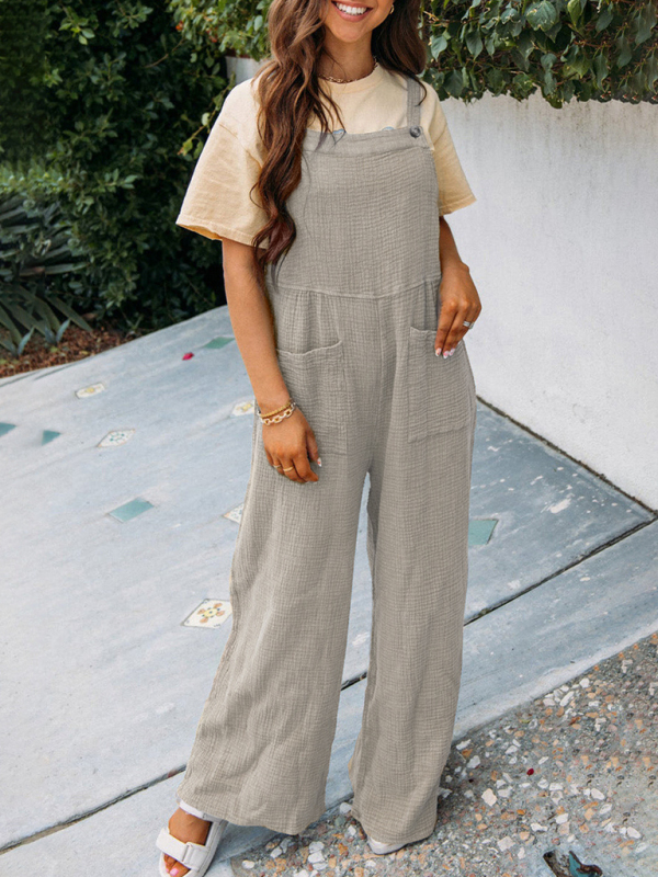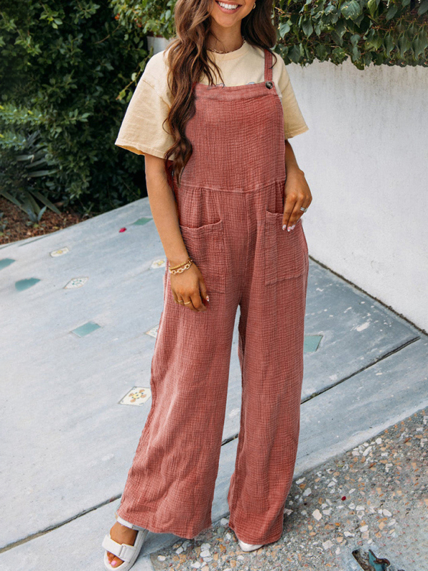 New Women’s Casual Solid Color Pocket Folding Square Neck Loose Suspender Jumpsuit is suitable for many occasions, the simple design makes the boring season colorful and interesting. A variety of collocation options make you confident and beautiful. It fits snugly without restricting your movement.