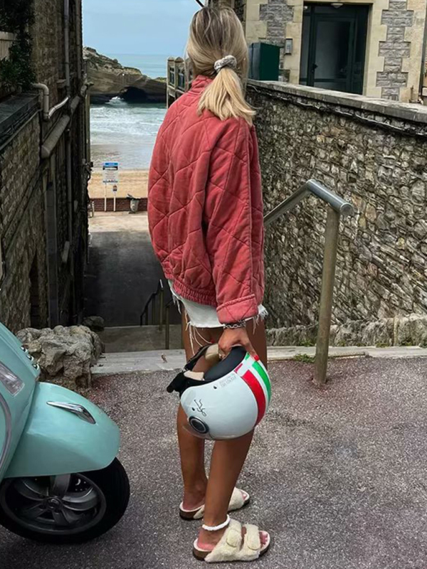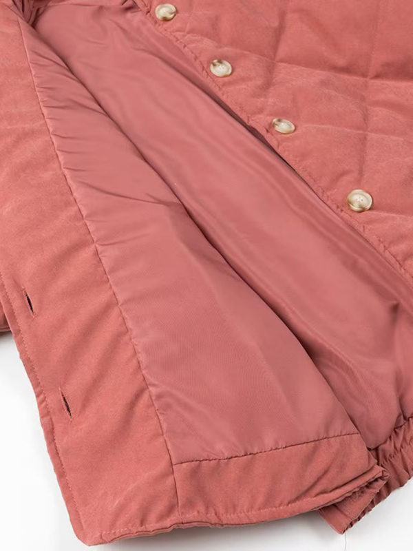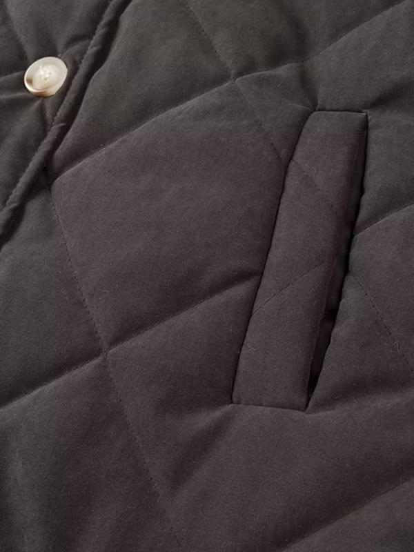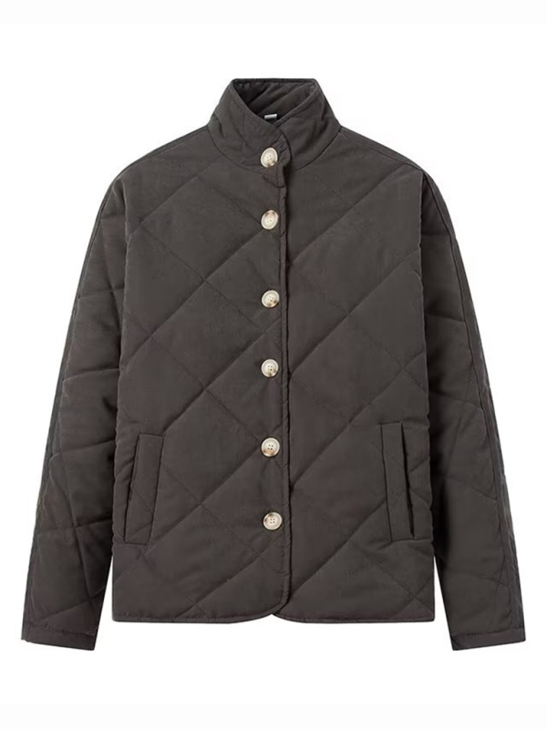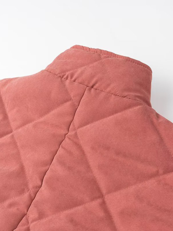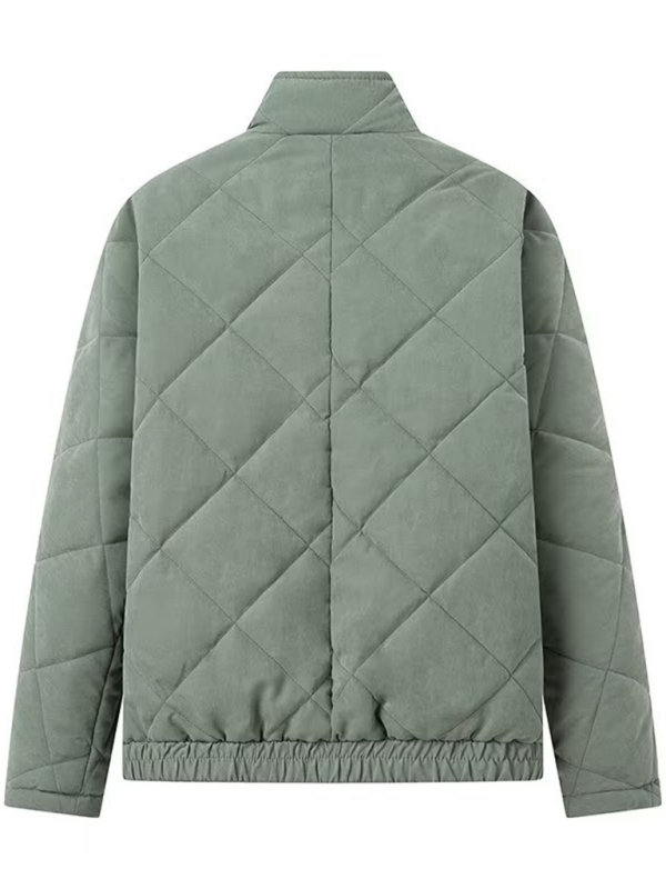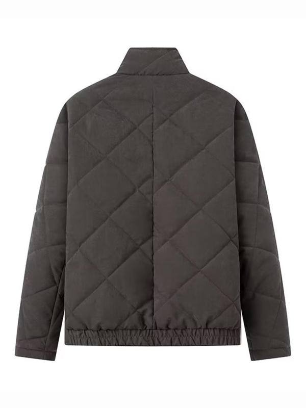 The jacket may feature a diamond check design, creating a geometric and textured feel. Stand collar design can increase warmth and style. Jackets are suitable for autumn and winter, keeping you warm and showing off your style. It can be paired with jeans, long skirts, boots and other different clothing to create different looks. When wearing, you can pull up or down the stand collar to show different styles according to your personal preference.