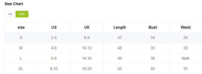 Size US UK Length Bust Waist