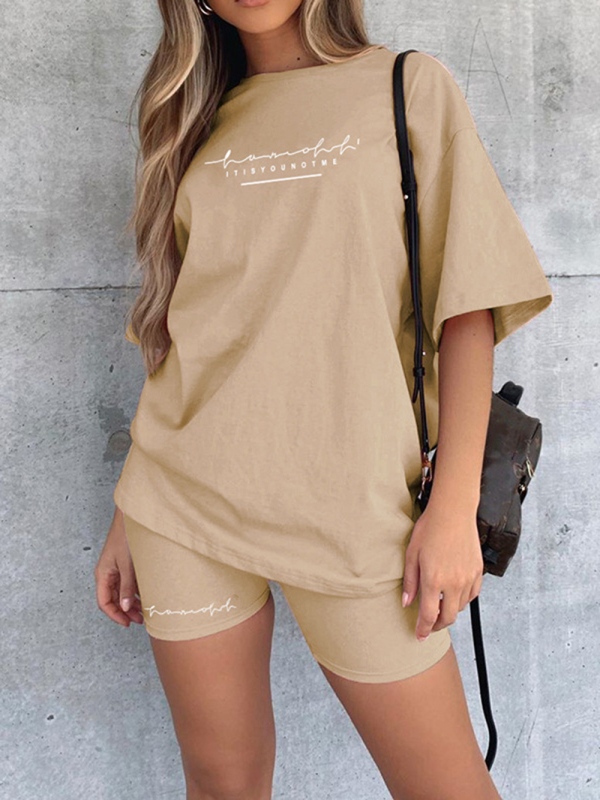 New letter printing fashion loose thin T-shirt casual sports two-piece suit