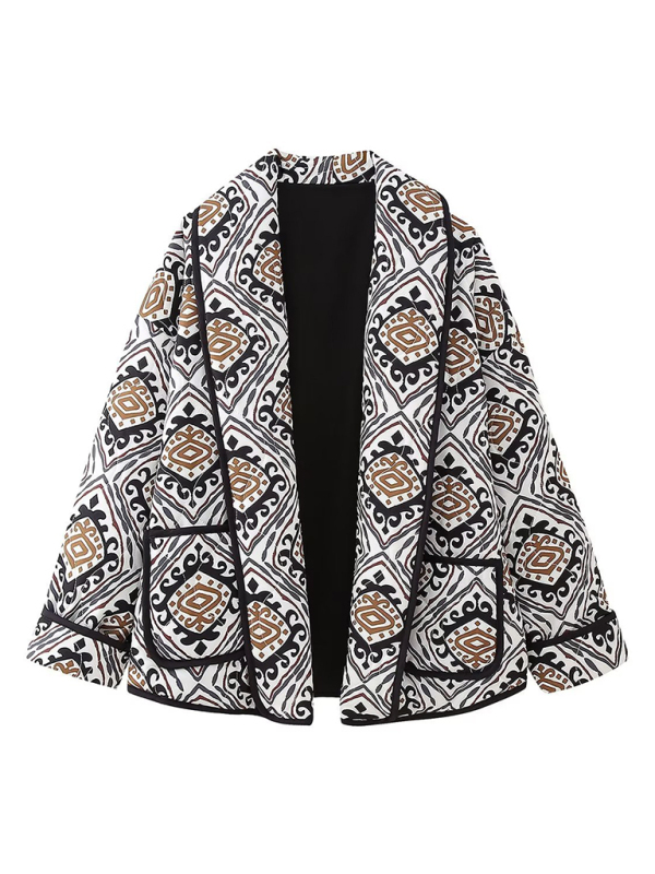 New loose, slim, fashionable and versatile French V-neck long-sleeved printed cotton jacket
