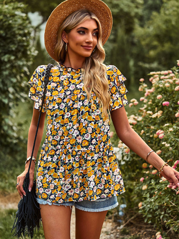 New style Feifei sleeve round neck T-shirt temperament short-sleeved shirt