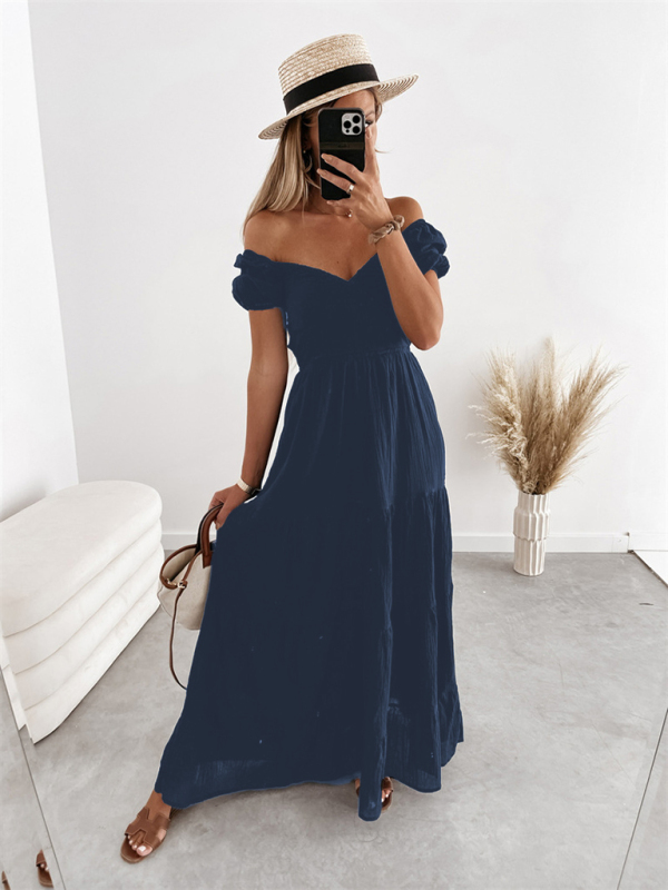 The new short-sleeved off-the-shoulder solid-color open-back tie-up temperament commuter high-waisted dress is suitable for many occasions, and the simple design makes the boring season colorful and interesting. A variety of collocation options make you confident and beautiful. It fits snugly without restricting your movement.