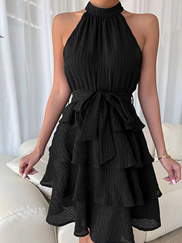 New style women’s stitching sleeveless ruffled dress with pleated fabric. Please use the size guide shown in our pictures. Before choosing a size, please read each element of the size guide carefully. Unique design, classic style, casual and comfortable. It is suitable for outing and leisure. The size is measured manually, and the error of 1-3cm is normal.