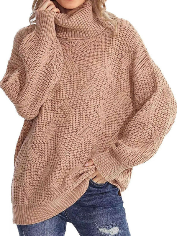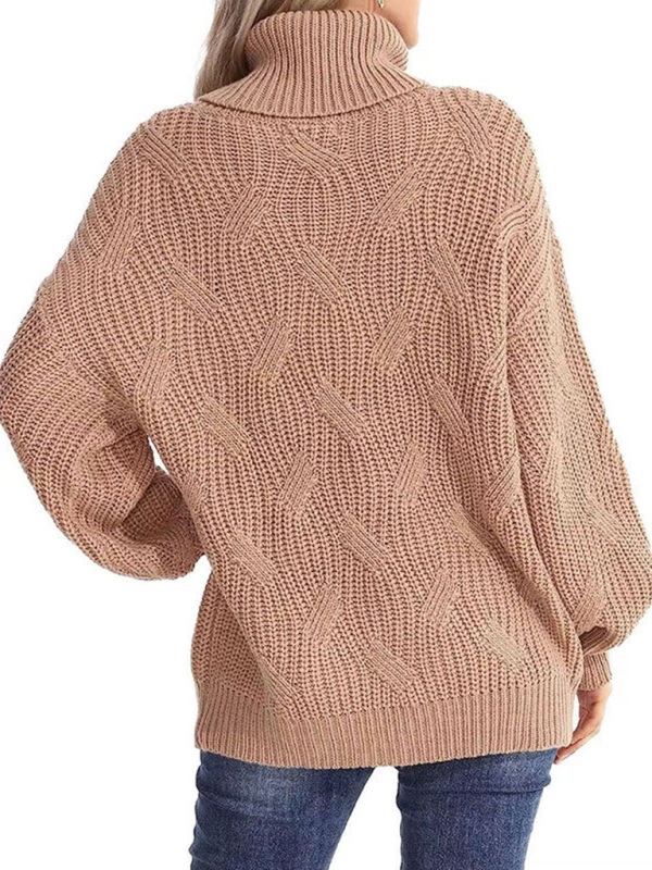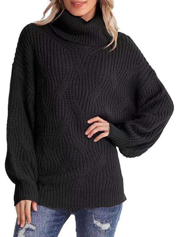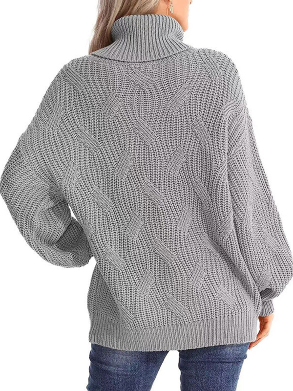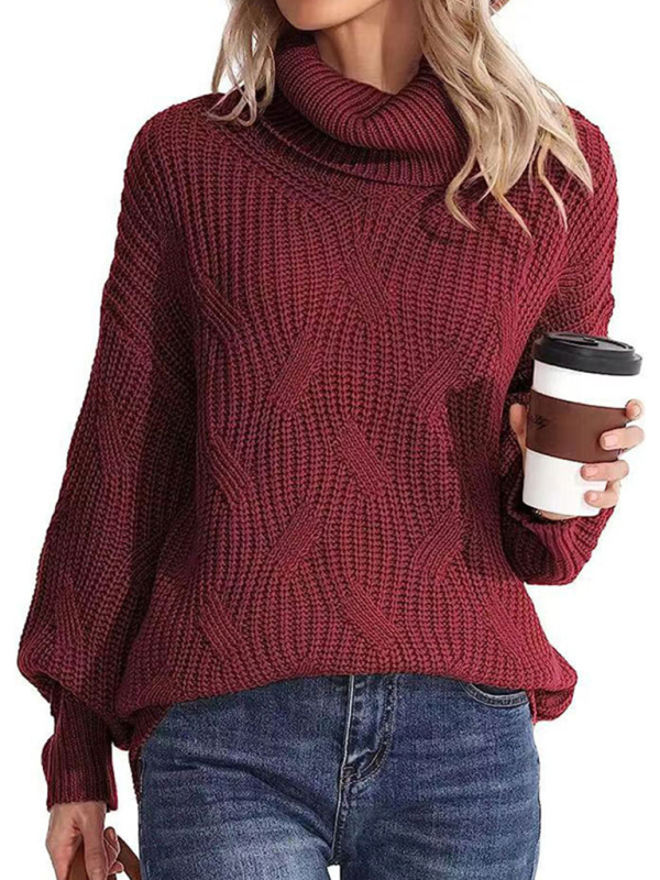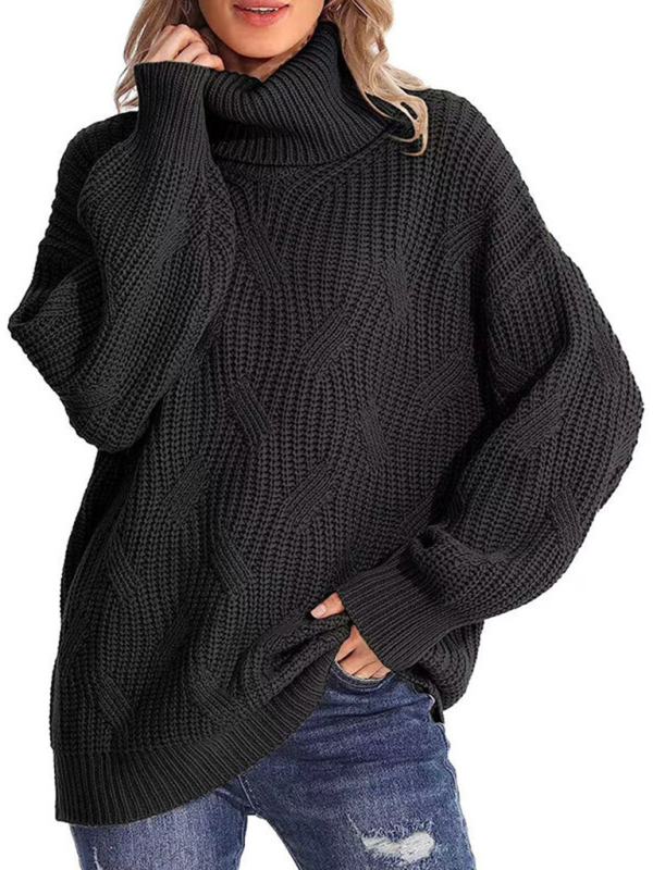 New thick line long sleeve solid color pullover turtleneck sweater