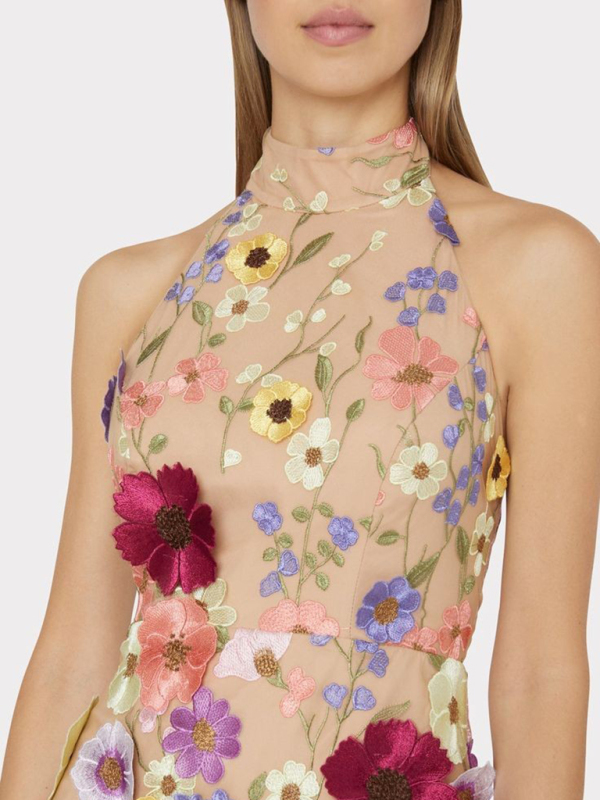 New women’s embroidered three-dimensional flower halter neck slim dress small dress