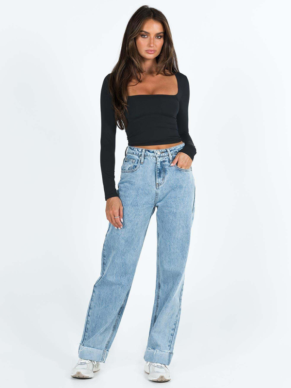The new women’s long-sleeved solid color navel-baring square-neck T-shirt top, the simple design makes the boring season colorful and interesting. A variety of matching options make you confident and beautiful. Please use the sizing guide shown in our images when purchasing. Please read each element in the size guide carefully before choosing a size. Sizes are measured manually, and an error of 1-3cm is normal.