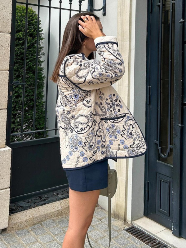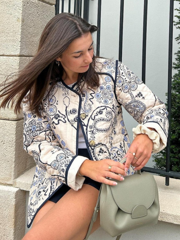 This new women’s retro patchwork printed cotton coat is a stylish choice for any season. The O-neck and long sleeves offer a classic silhouette, while the pockets add functionality. Made from 70% polyester and 30% elastane, this coat is perfect for a fashion-forward look.