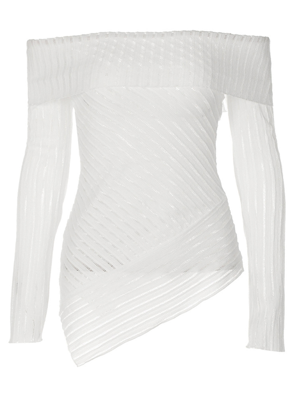 New women’s solid color slightly see-through long-sleeved casual style one-line shawl top