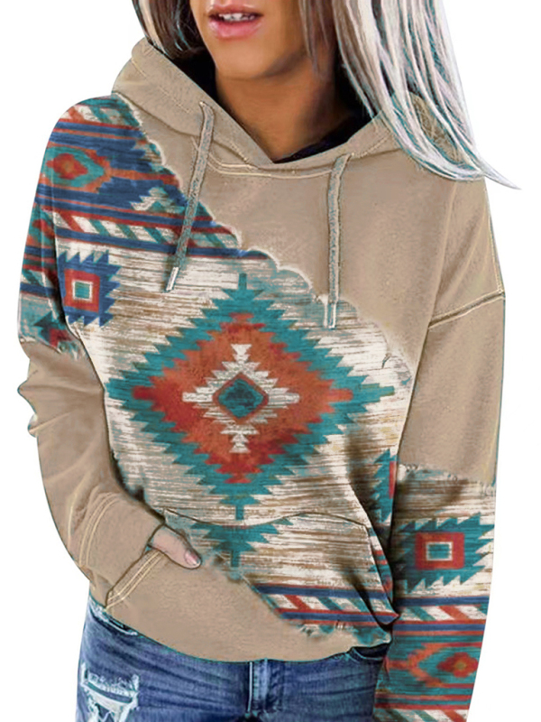 Positioning print coat top ladies hooded sweater