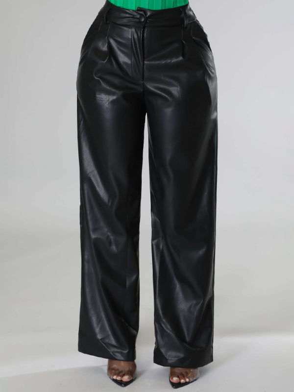PU women’s loose wide-leg pocket casual leather pants. Please use the size guide shown in our pictures. Before choosing a size, please read each element of the size guide carefully. Unique design, classic style, casual and comfortable. It is suitable for outing and leisure. The size is measured manually, and the error of 1-3cm is normal.