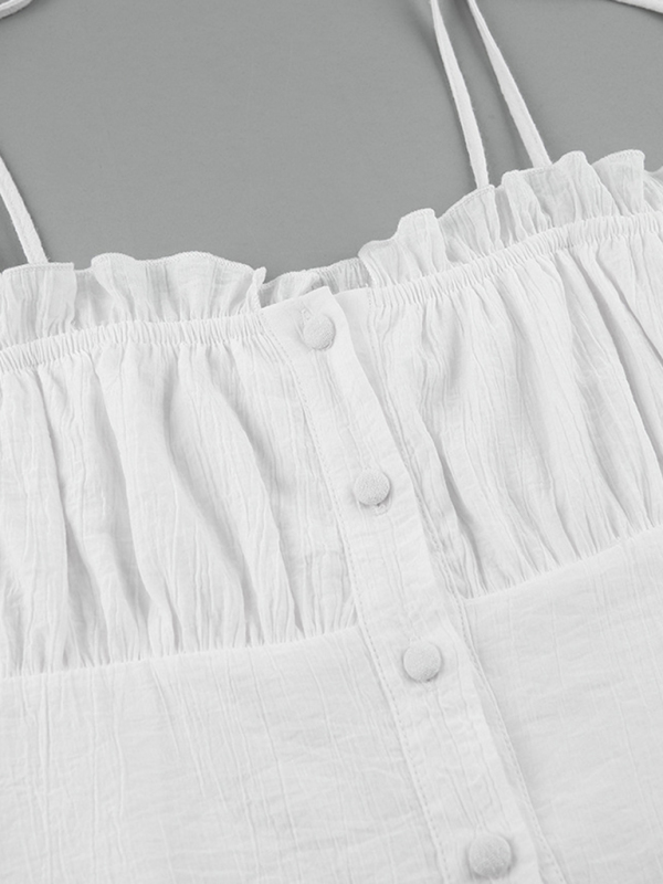 Women’s Sexy White V Neck Ruffle Skirt Tight Sling Dress is suitable for many occasions, the simple design makes the boring season colorful and interesting. A variety of collocation options make you confident and beautiful. Please use the size guide shown in our images. Please read each element in the size guide carefully before choosing a size. The size is measured manually, and it is normal for there to be an error of 1-3cm.