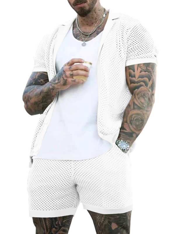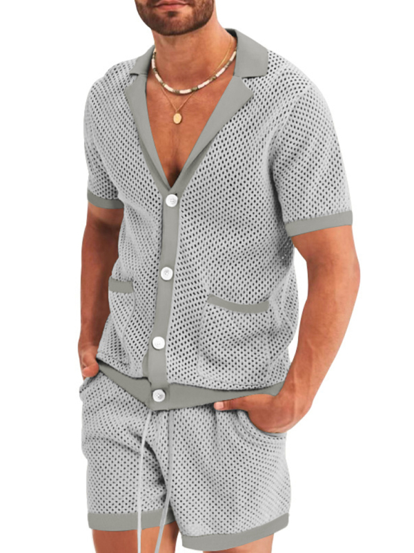 Two-piece set of short-sleeved shorts The see-through and cool knit lapel cardigan Short-sleeved men’s suit is suitable for many occasions. The simple design makes the boring season colorful and interesting. A variety of collocation options make you confident and handsome. It fits snugly without restricting your movement.