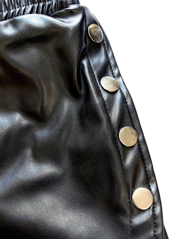 The side button PU leather shorts high waist solid color slit shorts are suitable for many occasions, and the simple design makes the boring season colorful and interesting. A variety of collocation options make you confident and beautiful. It fits snugly without restricting your movement.