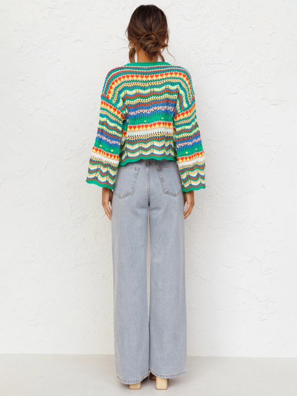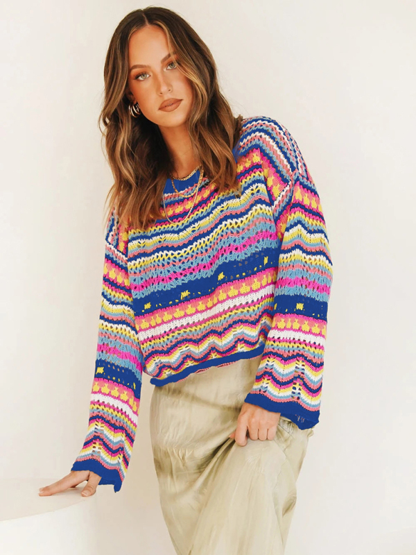 Splicing Knit Sweater Loose Intercolor Foreign Trade Round Neck Striped Sweater Women. Please use the size guide shown in our pictures. Before choosing a size, please read each element of the size guide carefully. Unique design, classic style, casual and comfortable. It is suitable for outing and leisure. The size is measured manually, and the error of 1-3cm is normal.