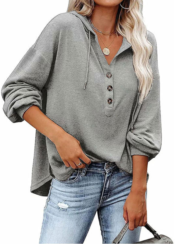 V-neck long sleeve loose casual hoodie.Please use the size guide shown in our pictures. Before choosing a size, please read each element of the size guide carefully. Unique design, classic style, casual and comfortable. It is suitable for outing and leisure. The size is measured manually, and the error of 1-3cm is normal.