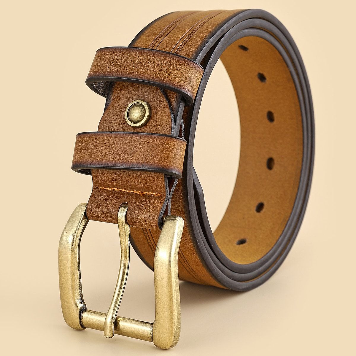 Western Denim Vintage Belt Fashion Casual Belt Commercial Men Belt Brown