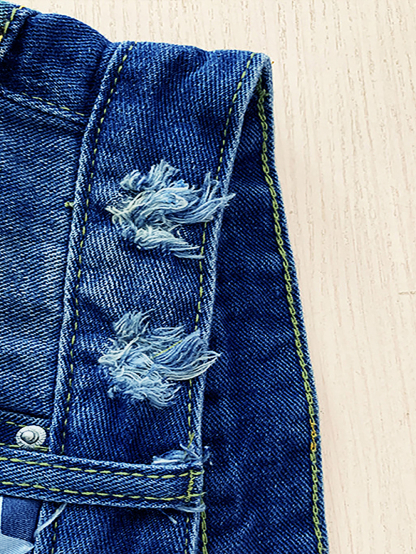 Our Mid-rise Distressed Denim Shorts feature a dark wash with heavy distressing along the front and back. The low stretch denim gives a structured and fitted silhouette that ends with a frayed hem. A classic five-pocket style and a front button closure finish the look. You can also find full-length jeans, casual pants, wide-leg pants in our store. Upgrade your wardrobe by our wholesale womens denim shorts.